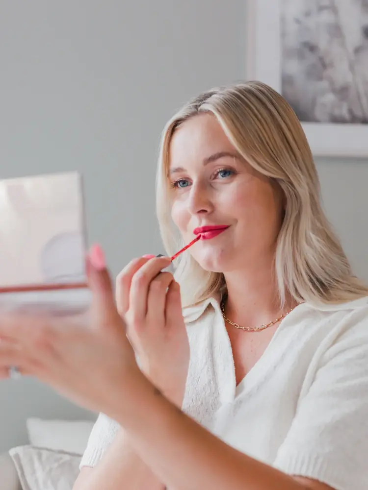 Jente som tar på seg leppestift