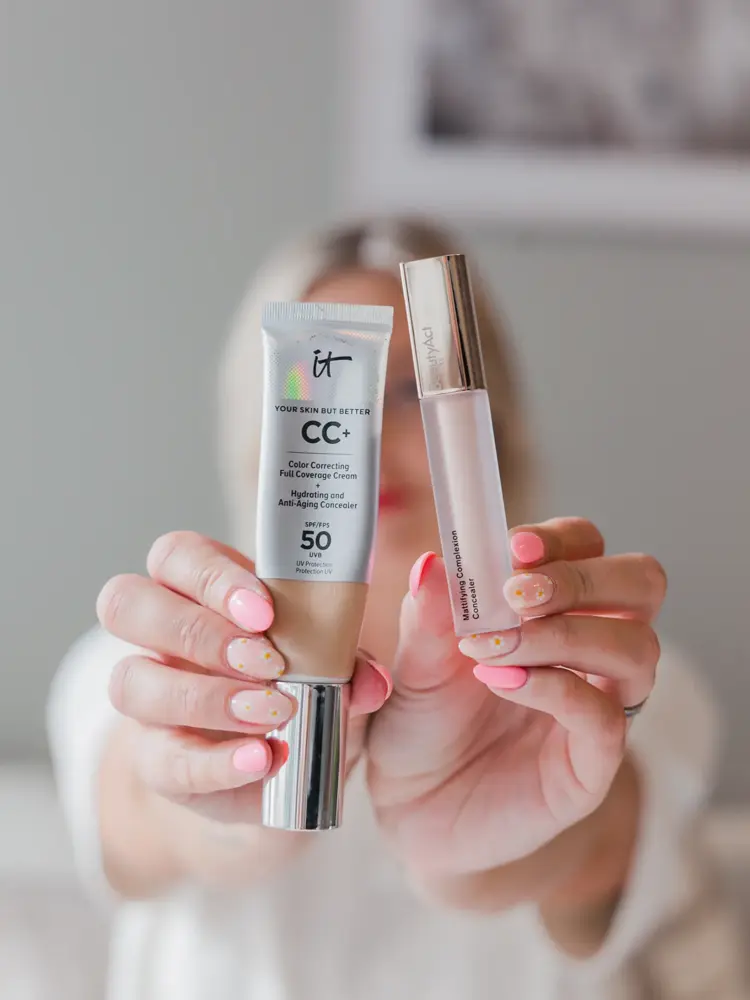 Foundation og concealer som blir holdt av dame