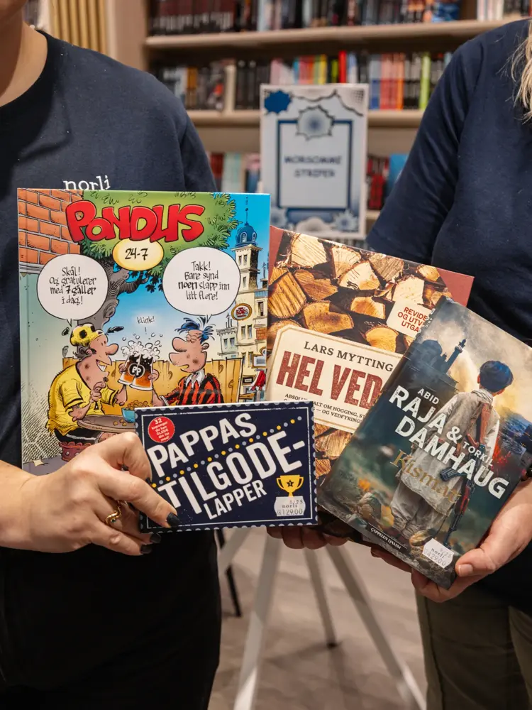 Eller hva med å gi far en god bok? Norli tipser om boken “Hel ved” av Lars Mytting og romanen “Kismat” av Abid Raja og Torkil Damhaug. Ikke minst er Pondus et populært valg til far.