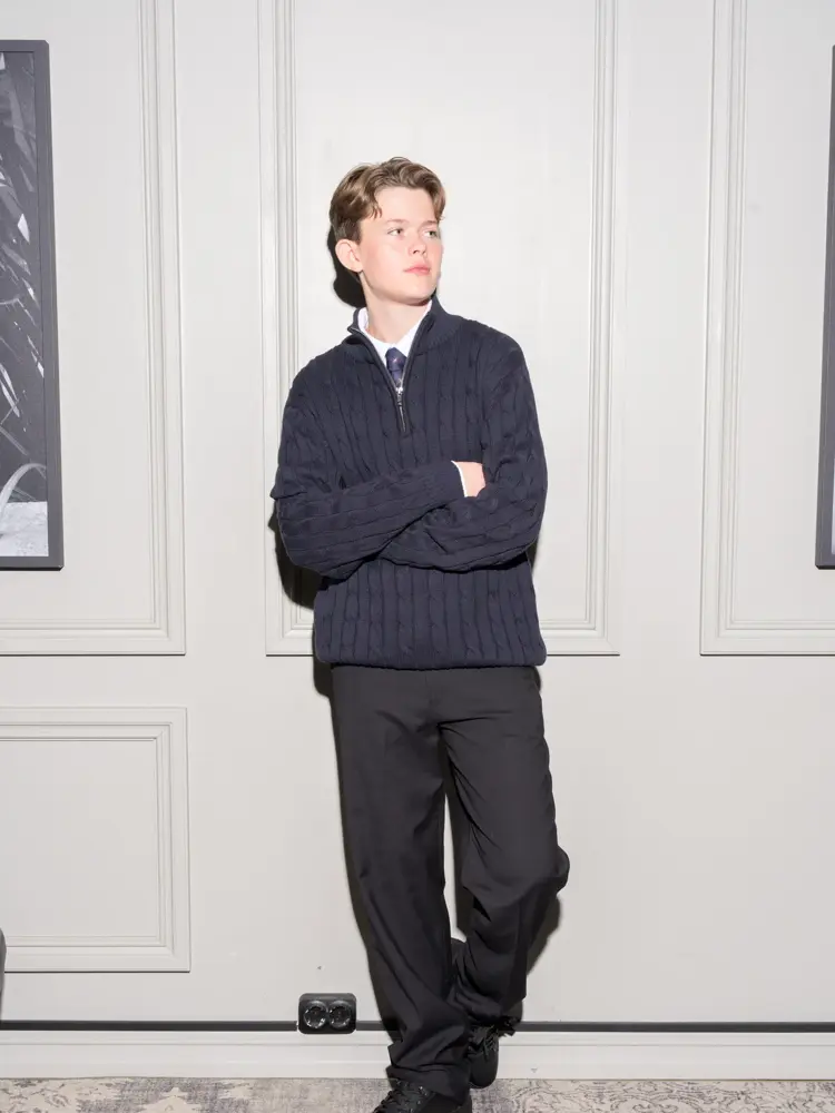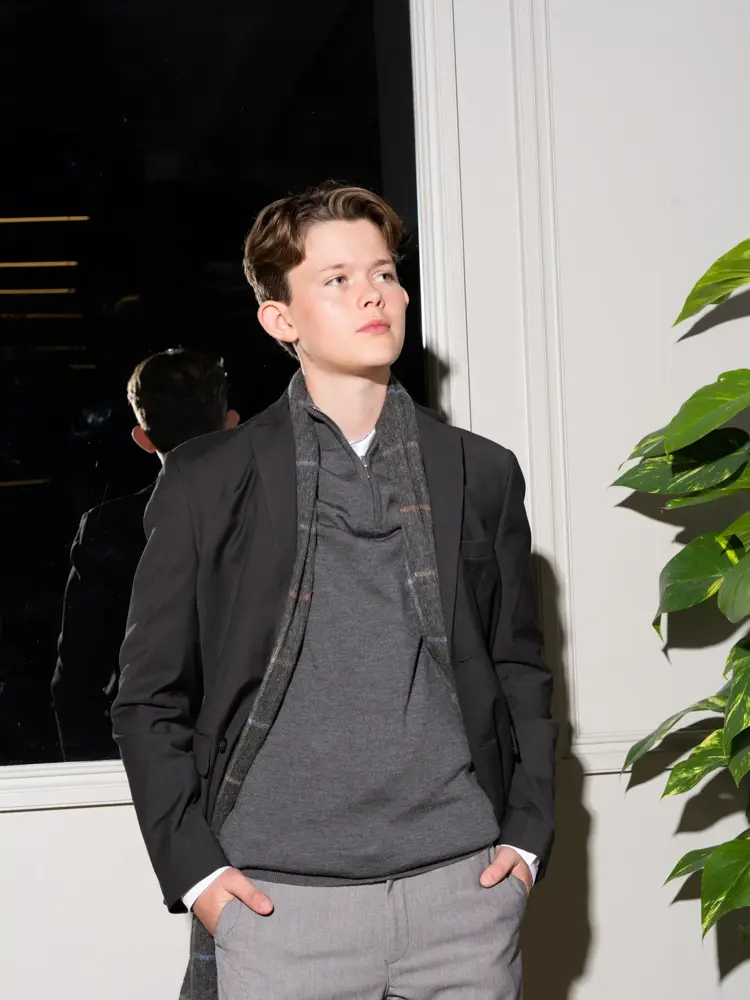 Grå halfzip og dressjakke fra Cubus. Skjerf fra Redford, Match. -