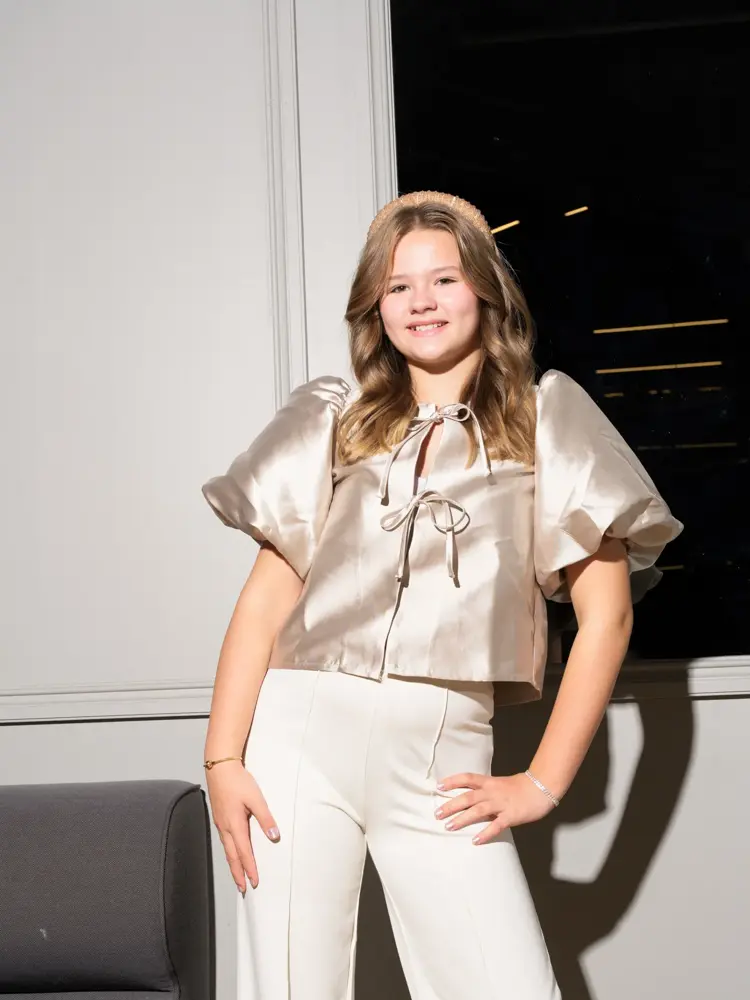 Topp fra Gina Tricot og hårbøyle fra Vic. -