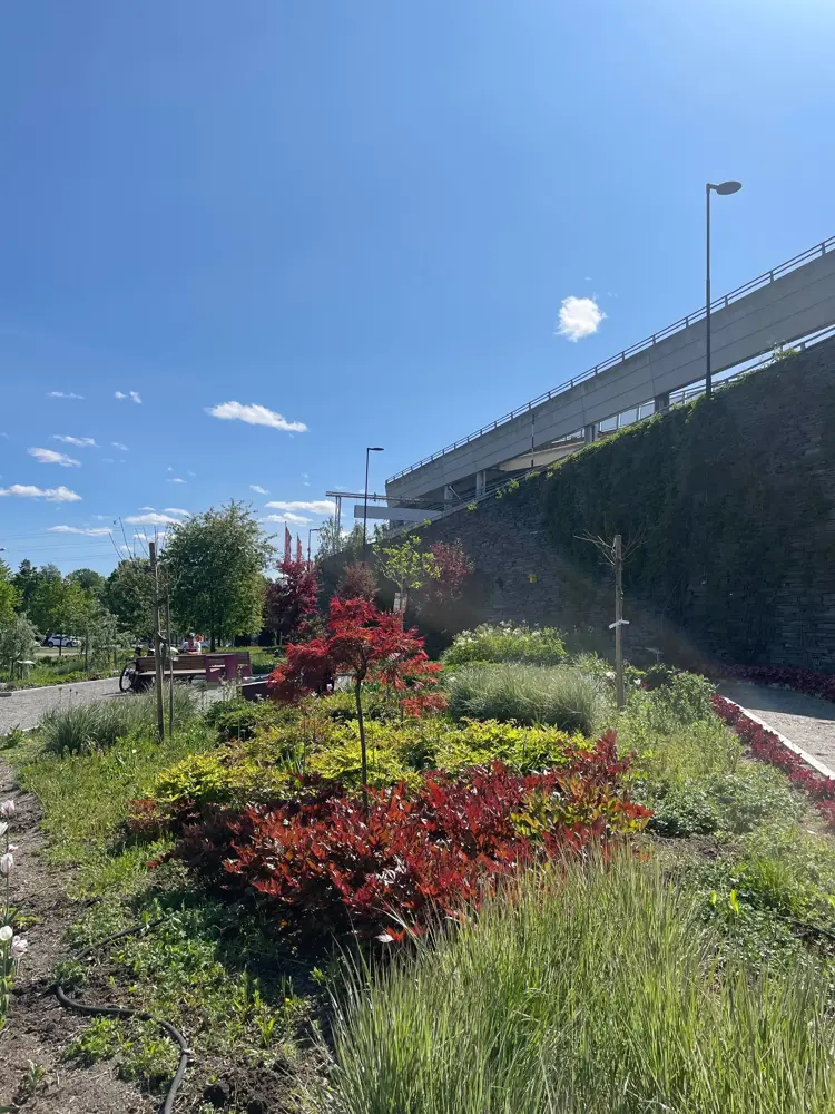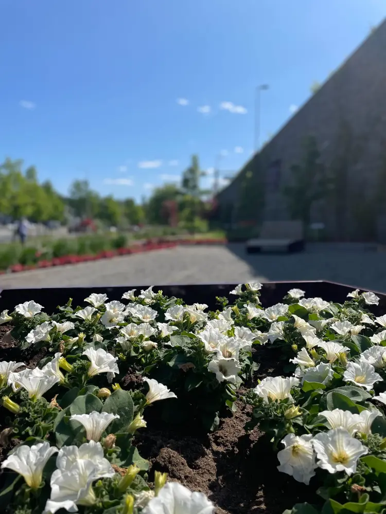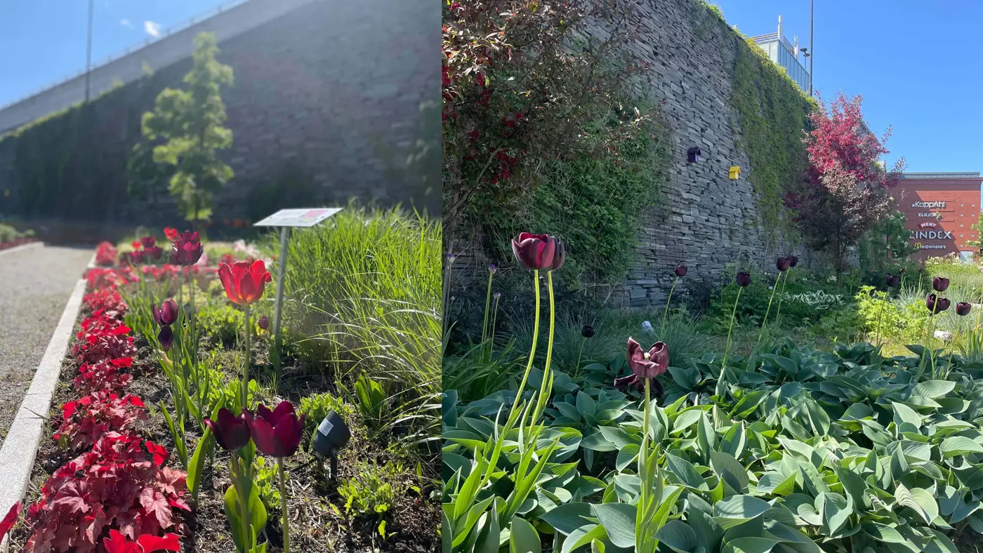 Utenfor senteret kan mennesker og insekter nyte deilige dager i vår egen senter-hage. Med ekspertise fra Mester Grønn har vi anlagt en blomsterhage med ca. 5000 bievennlige planter på bakkeplan.