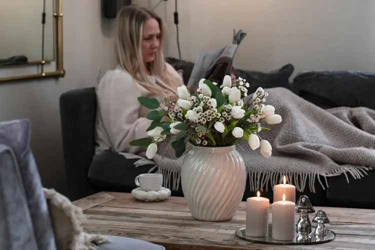 Mange bruker denne tiden til å pynte hjemmet med vinterlige detaljer, tenne lys, vakre kranser og nyte de første juleblomstene. Hent frem nøtteskålen, spis den første klementinen og pynt med juleblomster i hvitt, grønt og fersken.