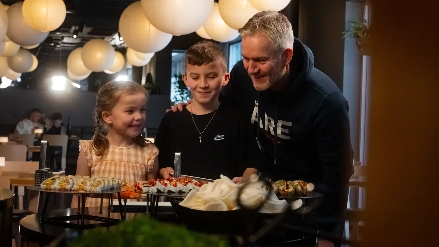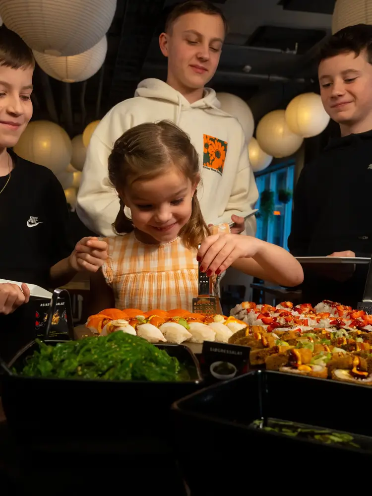 Visste du at barn under 6 år spiser gratis i følge med betalende voksen hos Sabrura? Barn 6–11 år betaler halv pris på buffet i følge med betalende voksen.